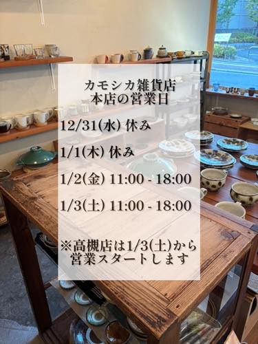 2025/12/28 大阪の器屋 / カモシカ雑貨店 12月29日(月) 本店 11時 – 18時 高槻店 12時 – 17時 12月30日(火) 本店 11時 – 17時 高槻店 12時 – 17時 <<前のブログへ 次のブログへ>>